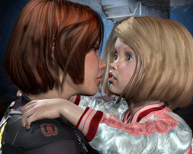 Алиса, наконец, пришла в себя, резко откатилась в сторону девочки. Боров стоял как заколдованный, удивленно рассматривая маленькую девочку.
